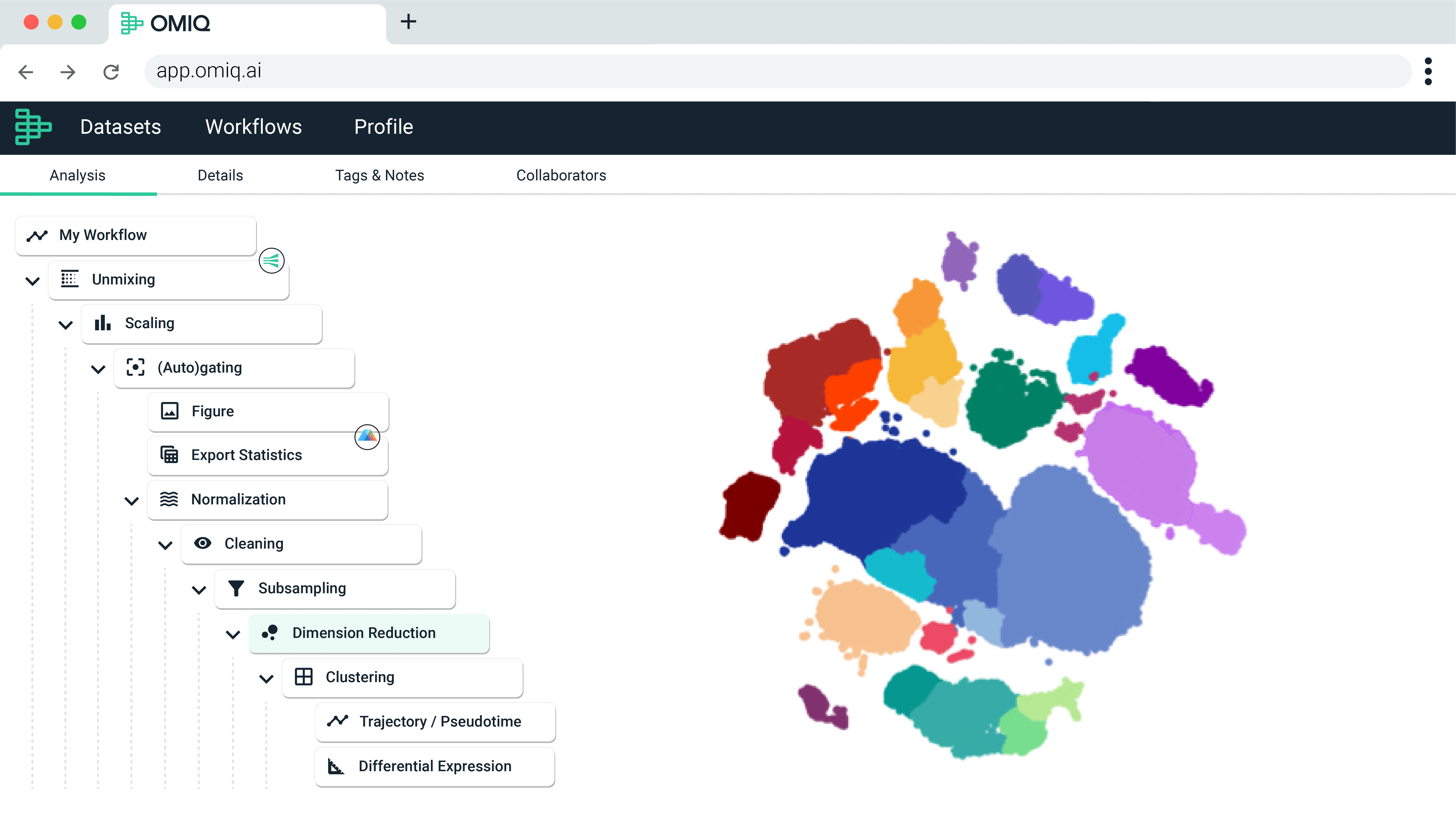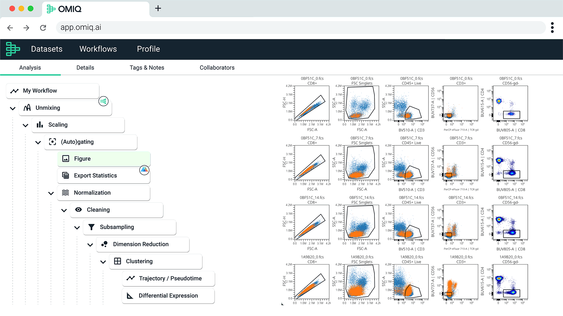 OMIQ helps make sense of the chaos of cytometry analysis with workflows and metadata providing clear visual touchpoints and reducing manual data handling and its associated risks.